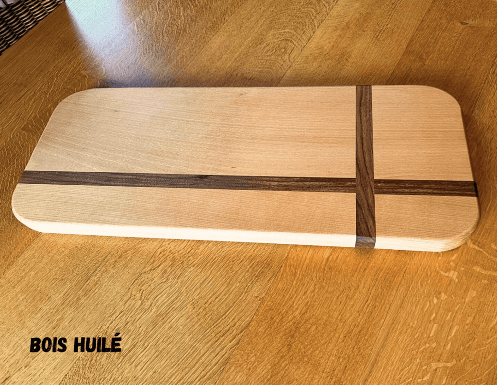 Planche en bois grand format en hêtre et noyer, brut et huilé