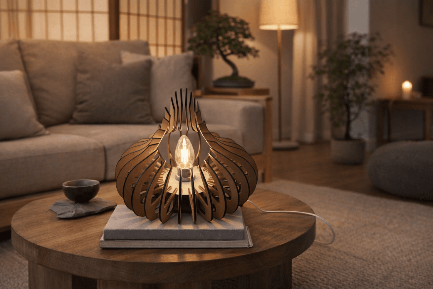 Lampe en bois « Lotus » : Élégance naturelle & lumière apaisante