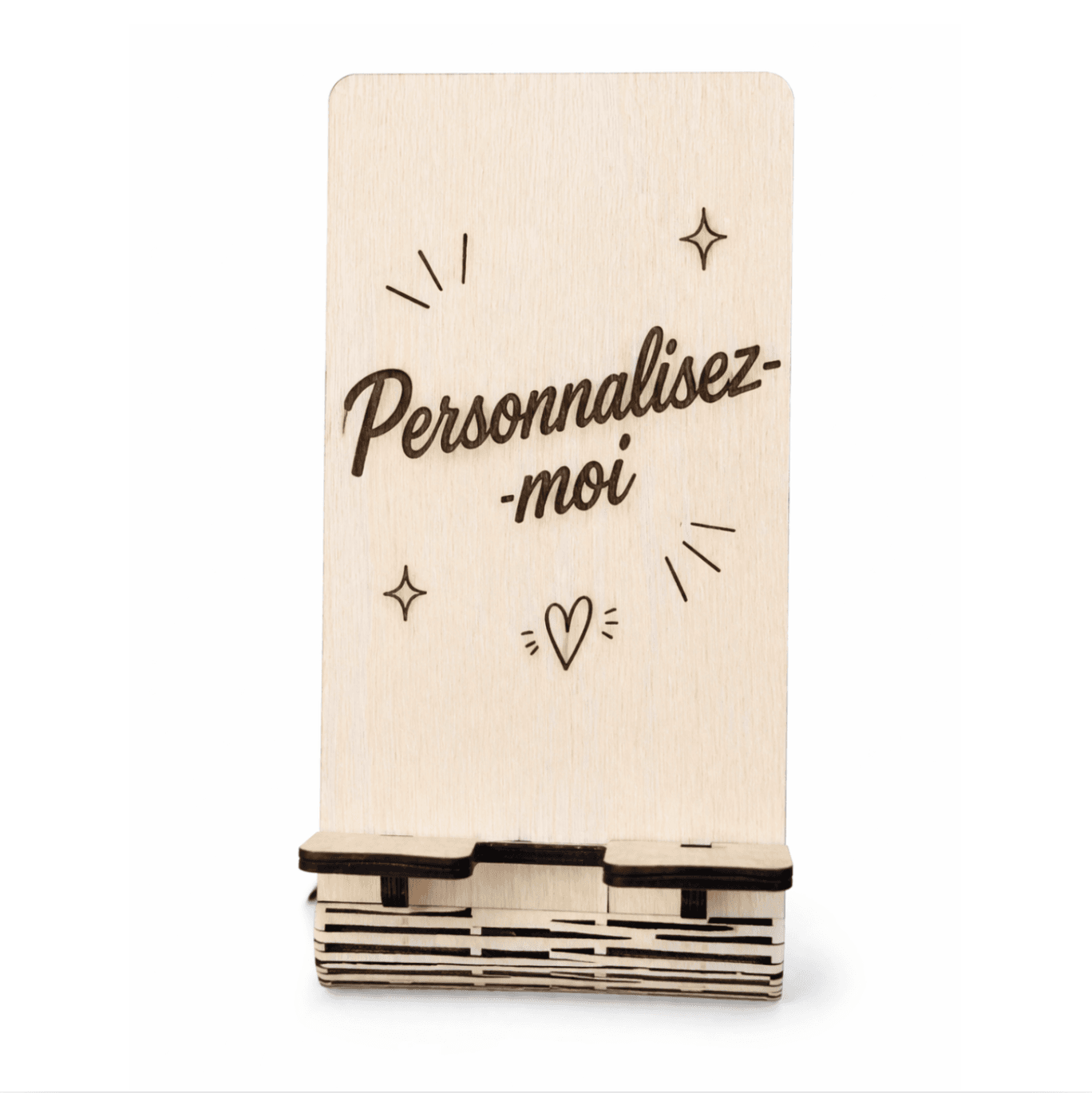 Produit : support téléphone en bois personnalisable